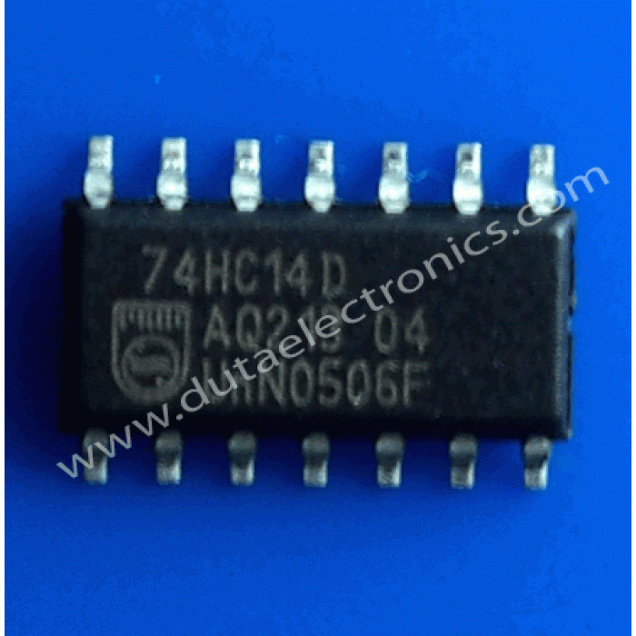 Pin configuration and function are the same as the 74HC04D but the inputs have 25% VCC hysteresis and with its schmitt trigger function, the 74HC14D can be used as a line receivers which will receive slow input signals.